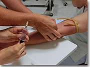 血液の鮮度が必要なため、手術直前に10〜20cc程度血液を採取します。その際、人間ドッグなどで採血する器具と同程度のものを使用します。
