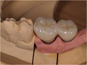 失った歯の両隣の歯を削って、1本の歯の代わりとなるブリッジを使用します。